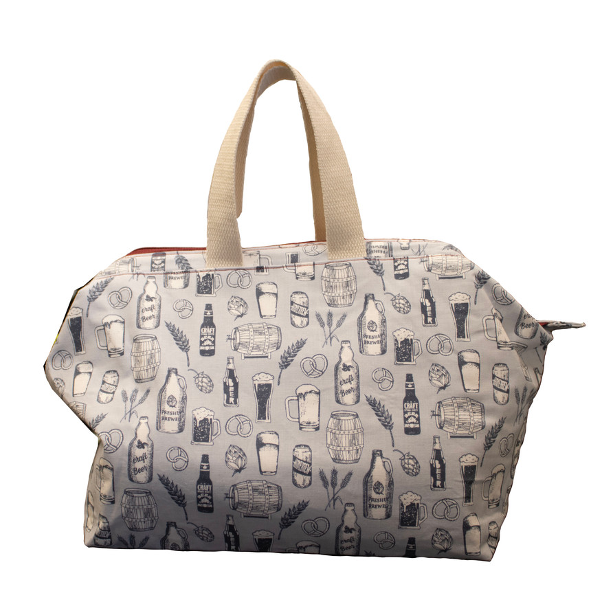 This large wire frame bag is made with craft beer blue fabric, perfect for beer lovers or anyone who appreciates a unique and fun pattern. It features a sturdy 10" wire-framed zipper opening and a 6" base, providing ample space to store your knitting or crochet projects, crafting supplies, or even groceries. The bag also includes durable handles for easy carrying. With its eye-catching design and practical features, this wire frame bag is a great addition to any crafter's collection.